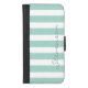 Classic Aqua Mint Stripes - Personalized Name iPhone Wallet Case