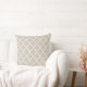A classic throw pillow featuring a white quatrefoil trellis pattern on a warm beige background. The moroccan-inspired lattice design brings versatile geometric texture that blends seamlessly with neutral, farmhouse, or transitional interiors. A polished accent for sofas, armchairs, or bedroom styling.
