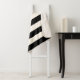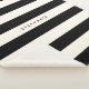 A classic look for in a horizontal stripes pattern in black and eggshell off-white. A text template is included to personalize with your name or other desired text in the center of the design. Get the look for your home, dorm or other cozy living space!