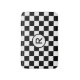 Classic black and white checkered pattern is made of rows of alternating white and black squares with a white circle outlined in black containing a custom monogram. Add your initial in the sidebar to personalize it.