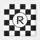 Add your monogram initial in the sidebar to personalize the classic black and white checkered pattern made of rows of alternating white and black squares.