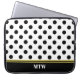 Classic Black and White Dot Pattern and Monogram Laptop Sleeve