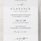 Classic all in one wedding invitation with a simple and minimal black and white design with a combination of traditional serif fonts and an elegant script along with your date in a large format for a modern touch. This elegant wedding invitation is great for a formal wedding.