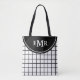 Classic Black and White Lattice Stripe Monogram Tote Bag