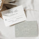 Designed to coordinate with our Romantic Script wedding collection, this customizable RSVP card, features a sweeping script calligraphy text paired with a classy serif & modern sans font in black with a frosted sage green back. The text and background can be changed to any color to match your theme. To make advanced changes, go to "Click to customize further" option under Personalize this template.