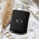 Monogram wedding can coolers in rich black feature your initials in traditional serif ivory ecru lettering. Add your names, wedding date, and location to the reverse side for a perfect destination wedding favor.