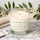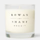 An elegant wedding favor candle design featuring your names and wedding year in crisp black lettering.