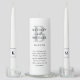 Classic black and silver wedding unity candle set featuring the couple's names alongside a personalized quote or verse in sleek typography. The wedding date and monogram initials on each taper candle complete this modern design. Customize every element for your ceremony.