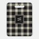 This classic black and off-white tartan plaid pattern has a rugged outdoor appeal. It features a matching square frame surrounding a monogram initial that can be personalized with your initial. This item makes a wonderful gift for those who enjoy attending outdoor sports and makes sitting on bleachers or hard stadium seats more comfortable. Available in two sizes.