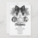 Celebrate with timeless sophistication using this elegant monochrome invitation featuring detailed ornaments with reindeer and snowflake motifs, pine greenery, berries, and a luxurious ribbon bow. The classic black and white palette creates refined elegance perfect for formal celebrations, traditional gatherings, or vintage-inspired Christmas events with distinguished style.