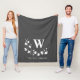 Classic Black White Monogram Name Floral Wreath Fleece Blanket