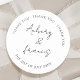 Classic Black White Personalized Names Wedding Classic Round Sticker.