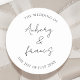 Classic Black White Personalized Names Wedding Classic Round Sticker.