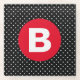Classic black and white polka dot pattern with big red circle in the center to add your initial.