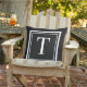 Classic Black White Square Frame Monogram Outdoor Pillow