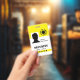 A classic and trendy black, white and yellow name badge featuring your personalized photo, barcode and logo template. Easily customize this badge to your brand.