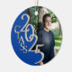 Graduates will love this custom holiday photo ornament available in their own school colors This silver and blue "Class 2025" photo ornament can be customized with a name and text on the back or add another photo.