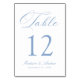 Complete your reception décor with this classic blue calligraphy wedding table number card, designed to coordinate beautifully with timeless and traditional wedding stationery. The word “Table” is displayed in elegant blue calligraphy-style script, with the table number centered below in refined serif lettering for a clean, balanced look. Personalize the design by adding your names and wedding date beneath the number for a thoughtful finishing touch. The minimalist layout feels polished and intentional, while the matching design on the back creates a cohesive presentation from every angle. Ideal for classic, garden, and estate weddings, this table number card adds understated elegance to your reception tables. This card measures 3.5"x5". Edit each table number individually and add them to your cart to ensure a smooth ordering process.