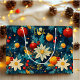 A classic Christmas gift bag featuring deep blue tones, festive red and gold ornaments, poinsettia flowers and lush winter greenery. The top and bottom text areas are fully editable, allowing you to personalize with any name or holiday message. Perfect for Christmas gifting, family gatherings, holiday parties and elegant seasonal celebrations.