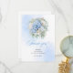 Boho wedding thank you card with blue hydrangea watercolor flowers and eucalyptus greenery, professionally printed by Zazzle on premium cardstock with crisp detail, rich color, and a smooth elegant finish.
