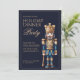 Spread holiday cheer with our elegant and timeless Christmas party invitation. Set against a rich dark-blue background and featuring a classic nutcracker illustration, this design brings a touch of festive sophistication to your celebration. The clean, refined layout and graceful serif lettering create a warm, inviting atmosphere before the party even begins.