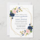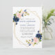 Classic Blue Pink Floral Geometric Gold Wedding Invitation
