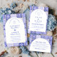 A timeless blue and white design inspired by classic Delft porcelain and French toile patterns. The patchwork tile border combines delicate florals, stripes, and ornamental motifs that evoke vintage European ceramics. A soft arched panel in the center keeps the layout refined and elegant while allowing the details of the porcelain-inspired pattern to frame the celebration beautifully. Perfect for couples planning a sophisticated blue and white wedding with traditional European charm.