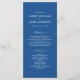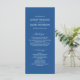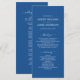 Classic Blue Script Wedding Program featuring crisp white typography on a rich classic blue background with elegant script section headers. The structured layout clearly presents the wedding party, ceremony order, and thank you message in a refined, easy-to-read format. Ideal for church ceremonies, formal venues, evening celebrations, and timeless traditional weddings. Easily personalize with your details.