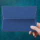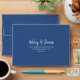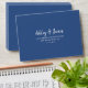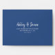 Chic, modern and simple self-addressed RSVP envelope with your names in white elegant handwritten script calligraphy on a classic blue background. Perfect for your wedding! Simply add your names and address. Exclusively designed for you by Happy Dolphin Studio.