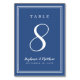Classic Blue Simple Wedding Dinner Table Number
