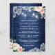 Classic Blue String Lights Floral Rustic Wedding Invitation