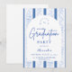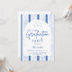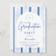 An elegant graduation celebration design featuring a delicate blue toile floral border inspired by classic European porcelain and vintage botanical prints. The intricate florals frame a clean arched center panel, creating a refined and timeless composition that highlights the graduate’s name and event details beautifully. Soft blue tones against a crisp ivory background give the design a sophisticated yet celebratory feel. Perfect for a stylish graduation gathering with a classic, romantic aesthetic.