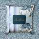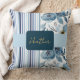 Classic Blue Watercolor Floral Striped Personalize Throw Pillow
