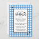 Invite your guests to your backyard BBQ picnic party with this classic invite featuring a blue and white gingham check pattern with picnic ants.