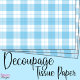 Tissue paper with a tartan style plaid in classic baby blue and white. Great for gift wrapping or decoupage.