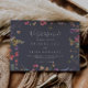 This classic blue wild elopement announcement has a beautiful modern design. The design features a yellow, purple, white wild flowers with foliage in a rose and green watercolor background.