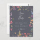 This classic blue wild floral save the date postcard is perfect for a rustic wedding. The design features a yellow, purple, white wild flowers with foliage in a rose and green watercolor background.