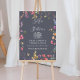 This classic blue wild floral selfie station sign is perfect for a rustic wedding or bridal shower. The design features a yellow, purple, white wild flowers with foliage in a rose and green watercolor background.
