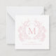 Classic Blush Pink Floral Crest Monogram Note Card