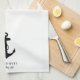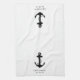 Nautical-themed kitchen towels for your boat featuring a classic illustration of a black anchor and your boat's name and location in simple and elegant typography and script.