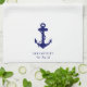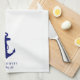 Nautical-themed kitchen towels for your boat featuring a classic navy blue illustration of an anchor and your boat's name and location in simple and elegant navy blue typography.