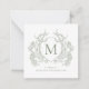 Classic Botanical Sage Green Floral Crest Monogram Note Card