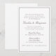 This wedding invitation features a simple border frame, the couple's names in a beautiful flowing script, and all the wedding details in classic lettering with a warm brown tone. Perfect for any style of wedding, from a backyard garden party to a formal ballroom reception. Fully customizable with your names, date, time, venue, reception details, and RSVP information.