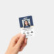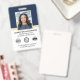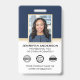 Make a professional impression with this classic identification badge design. Easily personalize it with your ID photo, name, job title, company name, and QR code. Space is provided for your logo and two accreditation symbols. All the text can be customized to suit your business needs. Printed colors: very dark navy blue, white and gold.
