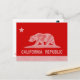 This postcard features the iconic state flag design on a clean white background. The graphic showcases the grizzly bear walking toward the left above the classic text and a bold horizontal red stripe at the bottom. A single red star occupies the upper left corner, completing the traditional emblem. This stationery is perfect for sending greetings from the Golden State or for collectors of regional memorabilia. The matte finish provides a smooth surface for writing personal messages.