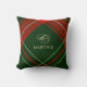 Beautiful and classic red and green holiday plaid Christmas pillow features a rustic plaid print and traditional calligraphy with your personalized name. This elegant holiday pillow is perfect as a seasonal gift or cozy home decor.