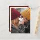 Elegant calligraphy script Save the Date text graphic with editable text fields and photo template. Back features additional text fields and complementary Christmas floral graphic.