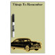 Automotive dry erase message boards with cool classic car in the background. Designed for boys or guys who love old cars, to keep shopping lists, to-do lists, appointments and special events where everyone can see. Add your own personal style to any room or office with a sports dry erase board for a kids rooms, college dorm room, or family room with customized text you can personalize.