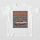 An abstract pattern with shades of orange and blue create the feel of a desert landscape creates the perfect backdrop for this classic car.