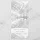 Classic Catholic Monogrammed Wedding Menu design features your text in an elegant, silver font within a silver border. Two small crosses are displayed at top on either side of heading. Reverse features an elegant faux-satin background to the initial of couple's new last name, displayed in a large, white lettering. Below this the couple's names and date of wedding are displayed against a white backing.